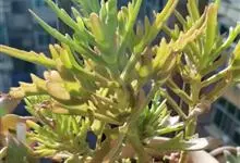 伽蓝菜是景天科伽蓝菜属植物。多年生草本,高20-100厘米。叶对生,中部叶羽状深裂,全长8-15厘米,裂片线形或线状披针形。聚伞花序排列圆锥状,长10-30厘米;苞片线形。花期3月。…全部>>