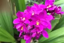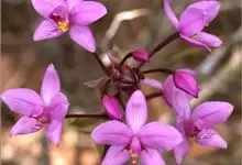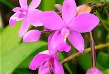 紫花苞舌兰:植株高达1米。假鳞茎卵状圆锥形,具3-5枚叶。叶质地薄,淡绿色,狭长,具折扇状的脉。花葶长达1米,下部具数枚筒状鞘;总状花序短,具约10朵花;花紫色;花瓣近椭圆形,比萼片大,…全部>>