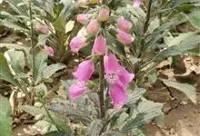 毛地黄是车前科、毛地黄属一年生或多年生草本植物。株高0.5—1米,茎直立,少分枝,全株被灰白色短柔毛和腺毛叶基生,呈莲座状,卵圆形或卵状披针形。顶生总状花序,花冠钟状,紫红色,内面有浅白斑点。菊果卵形。…全部>>