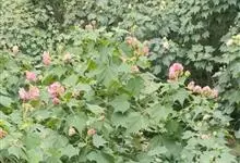 木芙蓉,锦葵科木槿属落叶灌木或小乔木。小枝上有细绒毛;叶片为卵状心形,托叶为披针形,常早落;花单生,花萼为钟形,花冠初为白色或淡红色,后逐渐变为深红色;果实为扁球形,有淡黄色的毛附着。花期8到10月。…全部>>