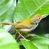 普通缝叶莺,是雀形目鹅科莺亚科缝叶莺属一种。体长10-14厘米,体重7-10克,雄鸟前额棕红,头顶至枕棕橄榄褐,上体橄榄绿染黄,飞羽及尾羽暗褐;繁殖期雄鸟的中央尾羽特形延长,下体淡皮黄白色。…全部>>