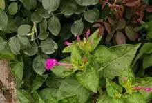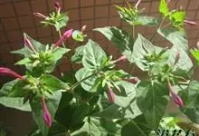 即紫茉莉,英文名:Four-o'clock,Marvel of Peru,为紫茉莉科、紫茉莉属多年生草本植物,一年生栽培。株高50~80cm。根粗壮,茎多分枝而散生。叶对生,卵形或心脏形。花数朵簇生…全部>>