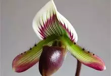 兜兰是兰科兜兰属的多年生草本植物。根茎粗状,直径3~4毫米,有很多须根;叶基生,叶片肉质增厚,排成紧密2列,叶片呈长圆形,表面有极短柔毛;总状花序,粉白色,花葶直立或倾斜,深绿色或褐色,花瓣大,呈唇形,…全部>>