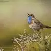 蓝点颏亦称“蓝喉歌鸲”,通称蓝靛颏儿。身体大小和麻雀相似,体长12-13厘米,体重17-18克。头部、上体主要为土褐色。眉纹白色。尾羽黑褐色,基部栗红色。颏部、喉部辉蓝色,下面有黑色横纹。下体白色。…全部>>