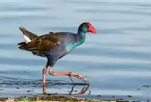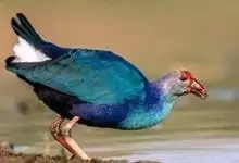 紫水鸡是秧鸡科紫水鸡属鸟类。下辖12个亚种,中国为云南亚种。体长40-45厘米,体羽大多为紫蓝色,翅表面和胸蓝绿色;尾下覆羽白色;嘴红色,粗大并与橙红色额甲相接;额甲宽阔,后缘呈截平状;雌雄鸟相似,…全部>>