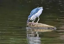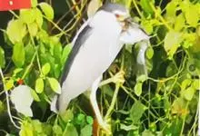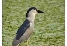 夜鹭是中型涉禽,体长46-60厘米。体较粗胖,颈较短;嘴尖细,微向下曲,黑色;胫裸出部分较少,脚和趾黄色;头顶至背黑绿色而具金属光泽;上体余部灰色;下体白色;枕部披有2-3枚长带状白色饰羽,下垂至背上,…全部>>