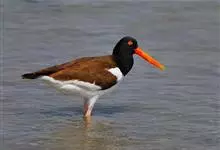 蛎鹬是鸻形目蛎鹬科蛎鹬属。蛎鹬的成鸟夏羽头、颈、胸和上体大部分为乌亮的黑色,腰到尾上覆羽白色,尾羽基部白色,端部黑色;翼上黑色,具有白横斑;下体胸部以下白色,翼下白色带黑缘;虹膜红色,啄和眼圈橘色,…全部>>
