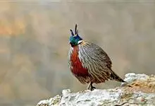 血雉雉科血雉属鸟类,别名血鸡、松花鸡,血雉的雄鸟大覆羽、尾下覆羽、尾上覆羽、脚、头侧、腊膜为红色,故称血雉。其别名甚多,各地皆异。在甘肃,因其胸侧和翅上覆羽沾绿,被称为“绿鸡”;因其羽毛形似柳叶,…全部>>