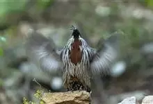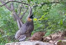 红腹角雉属于鸡形目雉科,雄鸟体羽及两翅主要为深栗红色,满布具黑缘的灰色眼状斑,下体灰斑大而色浅。雌鸟上体灰褐色,下体淡黄色,杂以黑、棕、白斑。全部>>