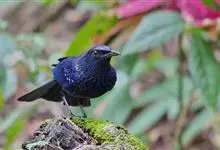 紫啸鸫是雀形目鹟科啸鸫属鸟类,又称黑雀儿,山鸣鸡、乌精。成鸟眼先及颏绒黑色;前额、头顶至背及肩羽和颈侧呈深紫蓝色,羽端具较密集的亮蓝色点斑;腰至尾上覆羽的深紫蓝色较暗而杂黑褐色,…全部>>