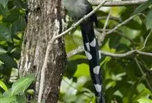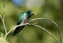 斑翅凤头鹃: 成鸟具羽冠,上体及头侧、翅、尾等黑色,具铁绿色亮辉,尾羽端部具白斑,两侧者形宽,中央者较狭;下体白色、淡灰白或略带棕黄色。虹膜褐至红褐色;嘴黑色;脚灰蓝黑色。…全部>>