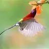 纹背捕蛛鸟:为太阳鸟科捕蛛鸟属的鸟类。是太阳鸟科中体型较大的一种,体重25-45克,体长160-210毫米。嘴粗长而尖且向下弯曲。上体橄榄黄色具黑色中央斑纹。下体淡黄白色满布黑色纵纹,尾具黑色次端斑。…全部>>