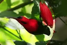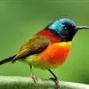 黄腰太阳鸟共有16个亚种,小型鸟类,体长10-15厘米。嘴细长而向下弯曲,雄鸟额和头顶前部金属绿色,头顶后部橄榄褐色。其余头、颈、背、肩、颏、喉、胸以及翅上中覆羽和小覆羽概为红色,腰黄色,…全部>>
