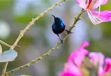 紫色蜜鸟为太阳鸟科花蜜鸟属的鸟类。分布于阿拉伯、伊朗、阿富汗、印度、尼泊尔、锡金、孟加拉、中南半岛、斯里兰卡以及中国大陆的云南等地,多栖息于海拔约950米以下的常绿阔叶林或村寨附近的丛林间。…全部>>