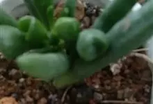 筒叶花月,是景天科青锁龙属的多年生草本植物。植株多分株,灌木状,茎较粗壮,圆柱形,表皮灰褐色;叶片肉质,互生,呈圆筒状,簇生于茎或分枝顶端,叶端呈斜截形,截面为椭圆形;花呈星状,淡白色;花期秋季。…全部>>