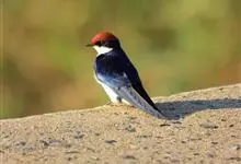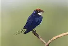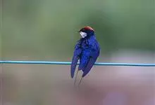 线尾燕,腹部接近纯白色,背部则为深紫色,头部的羽毛是栗色的。
