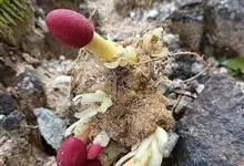 红冬蛇菰是蛇菰科蛇菰属的草本植物。株高2.5~9厘米;根茎苍褐色,扁球形或近球形,呈脑状皱褶;花茎长2-5.5厘米,淡红色;鳞苞片聚生于花茎基部,呈总苞状,花雌雄异株,花序近球形或卵圆状椭圆形,…全部>>