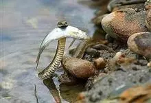 水蛇,是爬行纲蛇目游蛇科。体全长62-72厘米,背面灰褐色;体侧有二鳞宽、五鳞高的黑色横斑,各黑斑间相隔2-3鳞,这些黑斑向下延伸至腹鳞中间而上,…全部>>