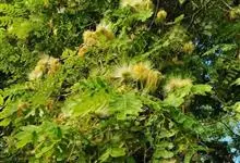 槐 Schott),豆科槐属的落叶乔木。树皮暗灰色,树冠球形,老时则呈扁球形或倒卵形。枝叶密生,羽状复叶。圆锥花序顶生,花蝶形,夏季开黄白色花,略具芳香。荚果肉质,念珠状不开裂,黄绿色,常悬垂树梢,…全部>>