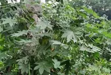 蓖麻是大戟科蓖麻属一年生粗壮草本或草质灌木。小枝、叶通常被白霜,茎直立,无毛,多液汁,绿色或稍带紫色,被白粉;叶轮廓近圆形,边缘具锯齿,叶柄粗壮,中空;蒴果卵球形或近球形,果皮具软刺或平滑;种子椭圆形,…全部>>
