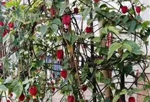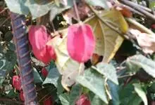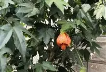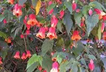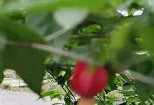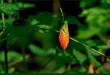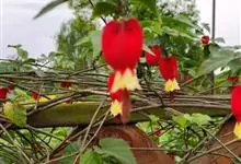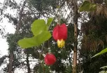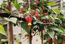 红萼苘麻是锦葵科、苘麻属常绿软木质灌木,叶绿色,长5-10厘米,心形,叶端尖,叶缘有钝锯齿,有时分裂,有细细的叶柄;叶互生,掌状叶脉;花单生于叶腋,具长梗,下垂;花萼红色,半套着大约4厘米长的花瓣,…全部>>