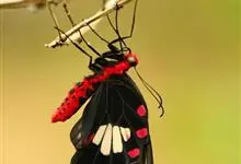 红纹凤蝶 ,Pachliopta aristolochiae,鳞翅目,凤蝶科,珠凤蝶属的一种蝴蝶展翅宽70~90mm。下翅黑色,具白色与桃红色斑纹,主要特征是下翅中央有4块白色斑纹组合成1块大型白斑…全部>>