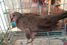 珠颈斑鸠,别名花斑鸠、珍珠鸠、花脖斑鸠、鸪鹪,是鸠鸽科副斑鸠属鸟类。体型中等,体长27~34cm,体重120~205g,雌鸟和雄鸟羽色相似,但雌鸟不如雄鸟羽色亮泽。珠颈斑鸠前额至头顶羽色稍淡,…全部>>