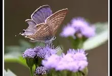 曲纹紫灰蝶是鳞翅目灰蝶科昆虫。成虫体长10-12毫米,翅展20-35毫米,翅面紫蓝色,前翅外缘黑色,后翅外缘有细的黑白边。翅反面灰褐色,缘毛褐色,两翅均具黑边。后翅有2条带内侧有新月纹白边,…全部>>