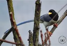 黄嘴蓝鹊是鸦科、蓝鹊属的鸟类。大型鸦类,体长45-69厘米。尾特长,呈凸状,蓝色,具黑色亚端斑和白色端斑。整个头、颈和上胸黑色,枕部有一白斑,其余上体紫蓝灰色。胸和上腹灰而沾紫蓝色,…全部>>