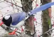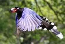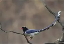 红嘴蓝鹊,别名山鹊、长尾鹊,是鸦科蓝鹊属的一种观赏性较强的大型鸣禽。该物种为体长54~65cm,头、颈、喉和胸黑色,头顶至后颈有一块白色至淡蓝白色或紫灰色块斑,其余上体紫蓝灰色或淡蓝灰褐色。尾长呈凸状,…全部>>