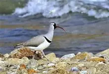 鹮嘴鹬体长40厘米,是一种灰、黑及白色鹬。识别特征为腿及嘴红色,嘴长且下弯。一道黑白色的横带将灰色的上胸与其白色的下部隔开。翼下白色,翼上中心具大片白色斑。幼鸟上体具皮黄色鳞状纹,黑色斑纹不甚清楚,…全部>>