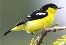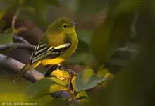 黑翅雀鹎:体重14-19克,体长11.5-16厘米。是树栖性绿色小鸟,外形与叶鹎相似,下体黄色。鸟喙直,翼长而尖,总体羽毛是绿色和黄色相结合,翼上具两道明显近白色横纹,翼近黑而羽缘白。…全部>>