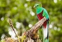 橙胸咬鹃:全长约28厘米。雄鸟头、颈橄榄绿色,上体及中央尾羽栗色;中央尾羽具黑色端,其外侧的2对尾羽黑色,最外3对尾羽基部黑色具白端;翼覆羽有密的黑、白相间横,飞羽黑褐;颏、喉橄榄色,胸橄榄黄,…全部>>