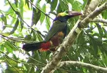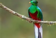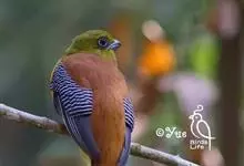 橙胸咬鹃:全长约28厘米。雄鸟头、颈橄榄绿色,上体及中央尾羽栗色;中央尾羽具黑色端,其外侧的2对尾羽黑色,最外3对尾羽基部黑色具白端;翼覆羽有密的黑、白相间横,飞羽黑褐;颏、喉橄榄色,胸橄榄黄,…全部>>
