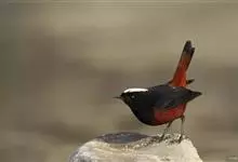 红头咬鹃: 体大,体长约33厘米,体重75-110克。头、颈暗绯红色;背、肩锈褐色。两翅黑色,翅上覆羽和内侧飞羽密被白色细虫蠹斑纹,初级飞羽黑色,外侧具白色羽缘;腰和尾上覆羽较多锈色。中央尾羽深栗色,…全部>>