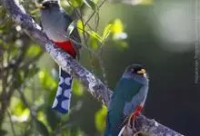 咬鹃共有1科6属39种,属小型攀禽。异趾形,1、2趾向后,3、4趾向前。羽色艳丽,具金属光泽。翅短、圆,次级飞羽及内侧初级飞羽甚短;尾显较翅长,尾羽宽,羽端在成鸟近平截形,在幼鸟则形尖,…全部>>