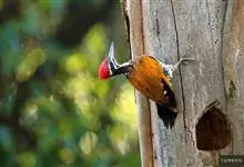 白腹黑啄木鸟,是啄木鸟科、黑啄木鸟属的中型鸟类,体长43-46厘米,头顶具长的红色羽冠,颚纹亦为红色,其余头、颈、胸和上体黑色,腰和腹白色,飞翔时白色腋羽和翅下覆羽亦明显可见。雌鸟头顶黑色,…全部>>