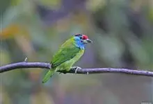 蓝喉拟啄木鸟,是须鴷科、拟啄木鸟属的鸟类。蓝喉拟啄木鸟为小型鸟类,体长20-23厘米。前额至头顶鲜红色,其上有一宽阔的黑色横带,将此红色分为前后二块;头侧、颏、喉蓝色,下喉两侧各具一红色点斑。…全部>>