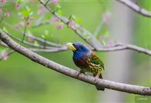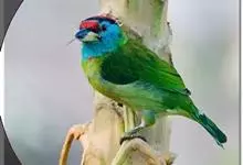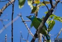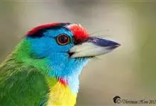 蓝喉拟啄木鸟,是须鴷科、拟啄木鸟属的鸟类。蓝喉拟啄木鸟为小型鸟类,体长20-23厘米。前额至头顶鲜红色,其上有一宽阔的黑色横带,将此红色分为前后二块;头侧、颏、喉蓝色,下喉两侧各具一红色点斑。…全部>>