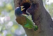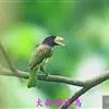 绿拟啄木鸟为鴷形目,须科,拟啄木属的一种。形较大拟啄木鸟略小,体长约260mm。头、颈及胸浅褐而具淡黄白色条纹;喉几为淡黄白色;身体余部草绿色。虹膜棕褐色,眼周裸露部黄色;嘴峰角黄色;跗跖和趾角黄…全部>>