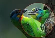 金喉拟啄木鸟,是须鴷科、拟啄木鸟属的鸟类。金喉拟啄木鸟为小型鸟类,体长19-24厘米。额深红色,头顶金黄色,后枕具一大块深红色斑,耳羽和头侧银灰色,上体草绿色,颏和上喉金黄色,下喉淡银灰色,…全部>>