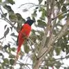 灰喉山椒鸟:共有8个亚种。体长18-22厘米。雄鸟头部和背亮黑色,腰、尾上覆羽和下体朱红色,翅黑色具一大一小的两道朱红色翼斑。中央尾羽黑色,外侧尾羽基部黑色,端部红色。…全部>>