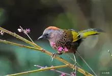 红头噪鹛中型鸟类,体长22~28厘米。头顶棕红色,眼先、脸、颏、喉黑色,上体橄榄色或棕橄榄褐色,外侧飞羽金黄色,尾羽基部亦为金黄色,下体多为暗橄榄褐色。该种和赤尾噪鹛较为相似,…全部>>