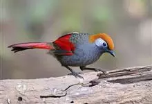 赤尾噪鹛中型鸟类,体长24~28厘米。头顶至后颈红棕色,两翅和尾鲜红色,眼先、眉纹、颊、颏和喉黑色,眼后有一灰色块斑。其余上下体羽大都暗灰或橄榄灰色。特征极明显,特别是通过鲜红色的头顶、翅和尾。…全部>>