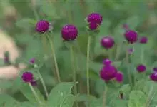 千日红,是苋科千日红属的一年生直立草本植物;茎粗壮,有分枝,枝略成四棱形,有灰色糙毛,幼时更密,节部稍膨大;叶片纸质,长椭圆形或矩圆状倒卵形;花果期6-9月。花色艳丽有光泽,花干后而不凋,经久不变,…全部>>