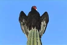 红头美洲鹫:是美洲鹫科、美洲鹫属动物。是一种大型的鸟类,翼展1.7-1.83米,体长64-81厘米,体重0.85-2.26千克。它们呈深褐色至黑色。头部及颈部没有羽毛及呈紫红色。喙短而钩,呈象牙色。…全部>>