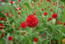 千日红,是苋科千日红属的一年生直立草本植物;茎粗壮,有分枝,枝略成四棱形,有灰色糙毛,幼时更密,节部稍膨大;叶片纸质,长椭圆形或矩圆状倒卵形;花果期6-9月。花色艳丽有光泽,花干后而不凋,经久不变,…全部>>