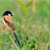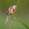 点胸鸦雀是莺科、鸦雀属小型鸟类,体长18-21厘米。头顶至枕橙棕色,嘴橙黄色、短而粗厚,脸皮黄色,耳覆羽和颊后部黑色,眼圈白色。上体棕褐色。颏黑色,其余下体淡皮黄白色,喉和上胸具黑色矢状斑。…全部>>