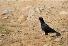 红嘴山鸦,是脊索动物门鸟纲雀形目鸦科鸟类。红嘴山鸦的成鸟通体羽毛纯黑色具有蓝色金属光泽,翼和尾泛有蓝绿色金属光泽;虹膜暗褐色,喙较为尖细,并且呈镰状下弯,喙和脚朱红色。…全部>>