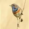 蓝点颏亦称“蓝喉歌鸲”,通称蓝靛颏儿。身体大小和麻雀相似,体长12-13厘米,体重17-18克。头部、上体主要为土褐色。眉纹白色。尾羽黑褐色,基部栗红色。颏部、喉部辉蓝色,下面有黑色横纹。下体白色。…全部>>